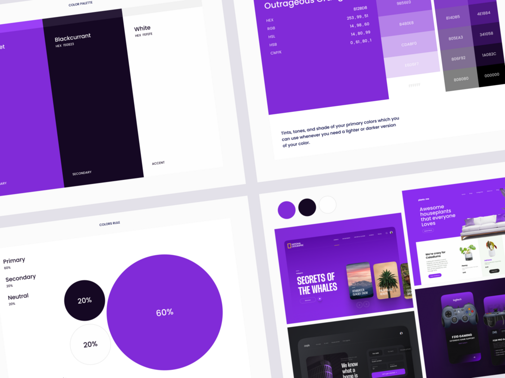 - A guideline of how to use your brand new color palette over your logo, website, social media, and more.