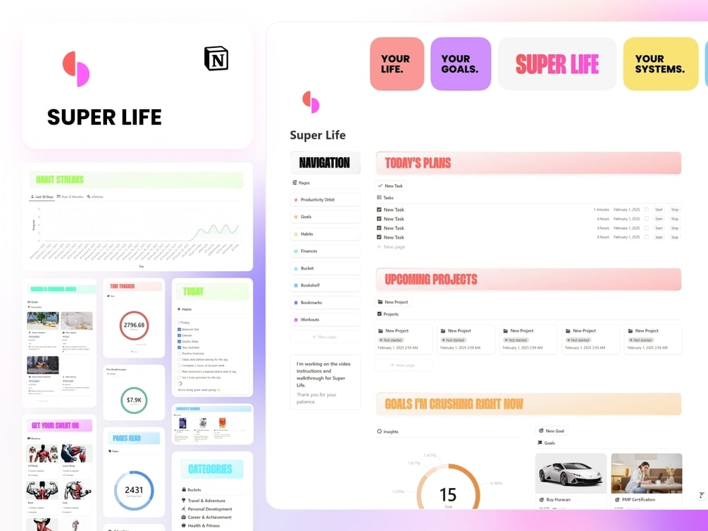 Designed to help you track goals, manage tasks, build habits, plan finances, organize knowledge, and more, Super Life is the ultimate tool to take control of your life effortlessly.